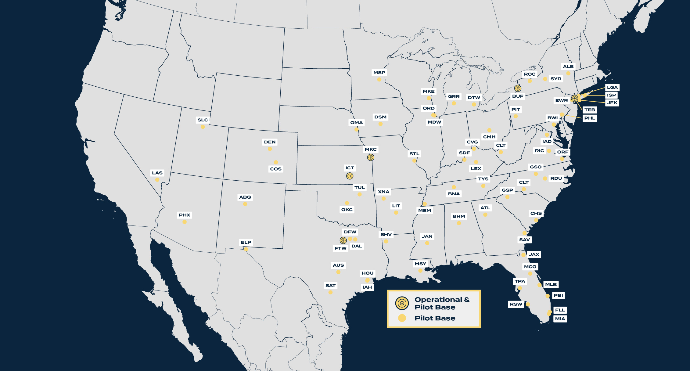 - Opportunity to live within one hour of any Airshare market, including over 60+ cities (see Domiciles section below)