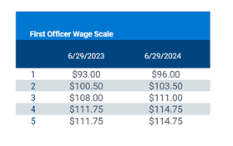 · Pilots who do not flow after completing five full years of service will move to top of scale Captain pay ($213 per hour)